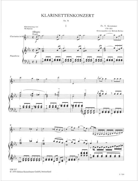 Krommer Franz - Clarinet Concerto in Eb Op 36 Clarinet/Piano