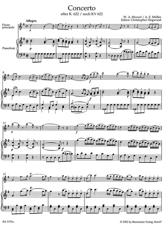 Mozart, WA - Concerto for Flute in G based on the Clarinet Concerto (K.622)