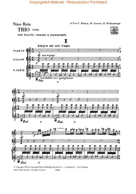 Rota, Nino - Trio for Fl, Vl & Pno (Ricordi)