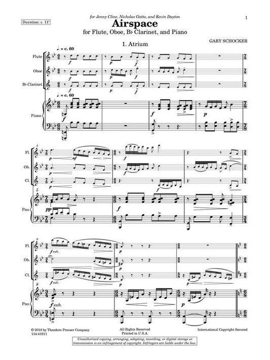 Schocker , Gary - Airspace For Flute, Oboe, Bb Clarinet, and Piano