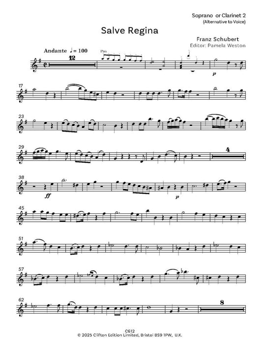 Schubert - Salve Regina - for Soprano or Clar, Obbligato Clar and Piano - Digital Download