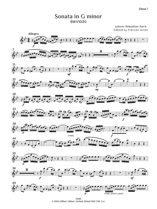 Bach JS - Sonata in G minor, BWV 1020 for two oboes and bassoon - Digital Download