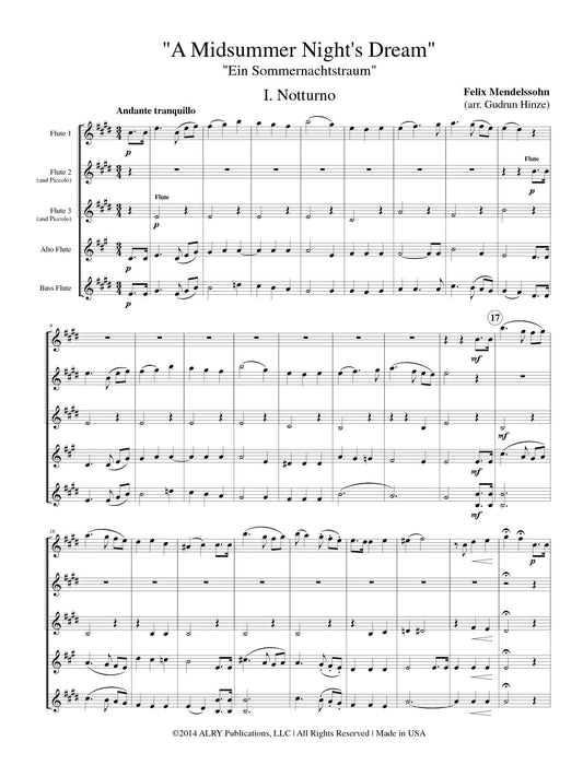 Mendelssohn, Felix - Midsummer Night's Dream for Flute Quintet