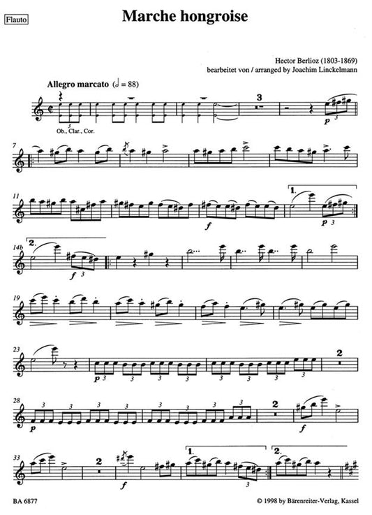 Berlioz Hector Marche hongroise arranged for Woodwind Quintet.