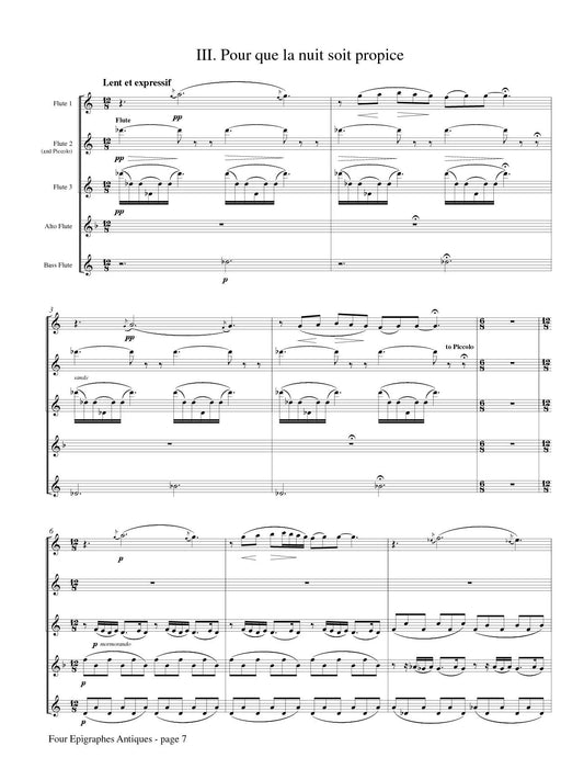 Debussy, Claude - Four Epigraphes Antiques for Flute Quintet