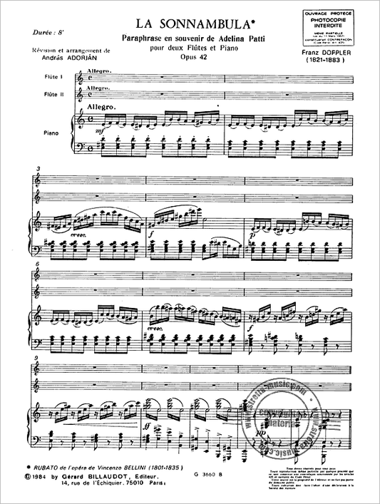 Doppler - La Sonnambula paraphrase en souvenir d' adelina patt for two flutes and piano