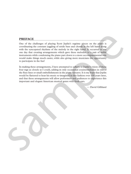 Joplin - Four Joplin Rags arranged for Two Flutes and Piano