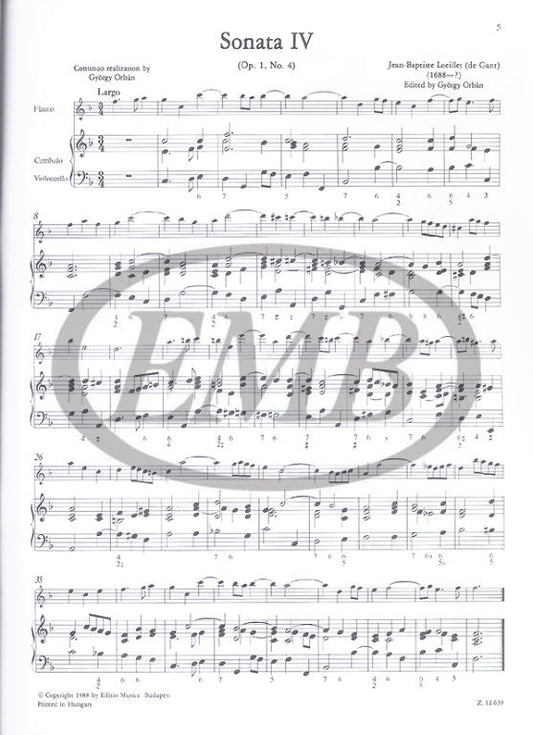 Loeillet, John - 12 Sonatas Op 1 Vol 2 Flute and BC - (EMB)