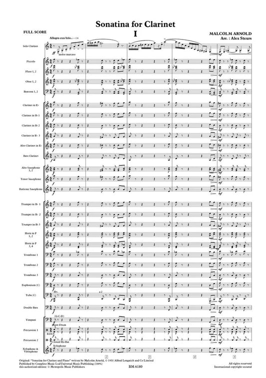 Arnold - Sonatina for Clarinet and Wind Band, op. 29