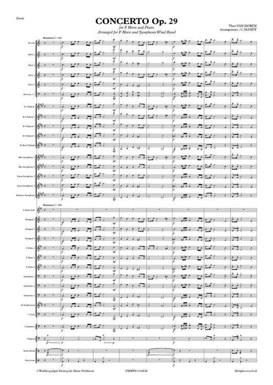 Concerto for French Horn and Wind Band, Op. 29 (Full Score & Parts)