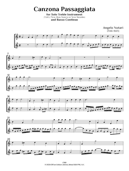 Notari, Angelo: Canzona Passaggiata for Solo Treble Instrument & Piano - Digital Download