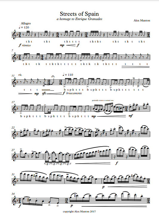 Manton , Alex – Streets of Spain for solo flute (Digital Download)