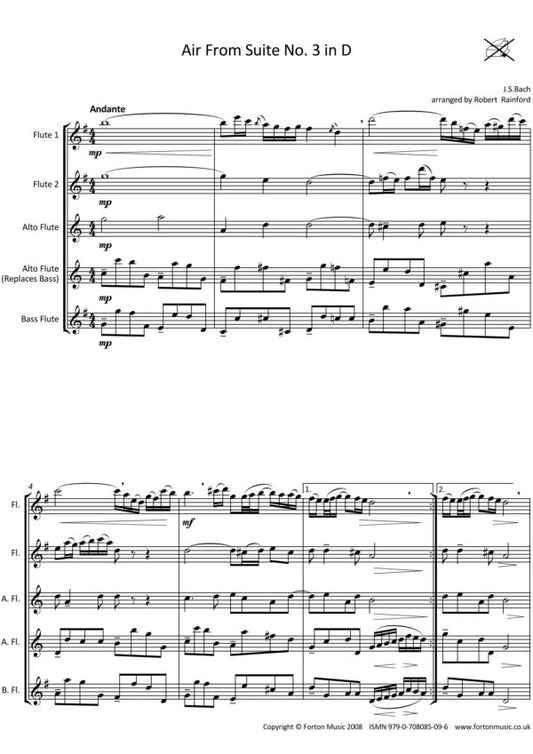 Bach, JS /Arr Rainford -Air from Suite no 3 in D for flute quartet - Digital Download
