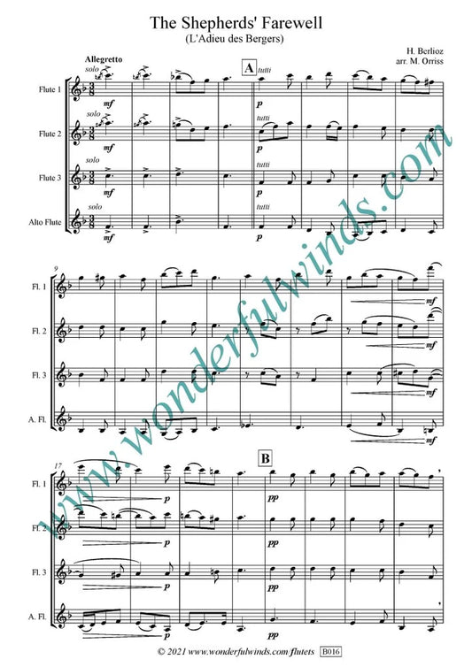 Berlioz, H - The Shepherds' Farewell - Berlioz, H.- for flute quartet (3 C flutes and 1 alto)- Digital Download