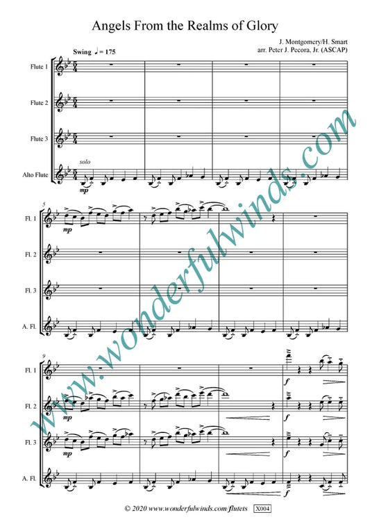 Angels From the Realms of Glory - Montgomery, J./Smart, H.- for flute quartet (3 C flutes and 1 alto)- Digital Download