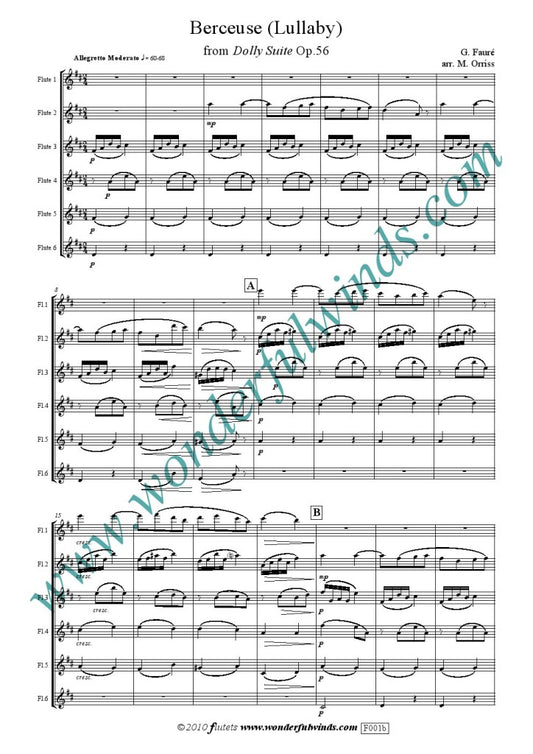 Faure - Berceuse from the dolly suite - for flute choir - Digital Download