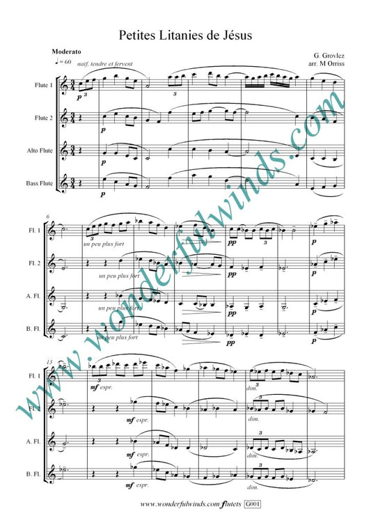 Grovlez, G -Petite Litanies de Jesus for quartet - 2 flutes alto and bass - Digital Download