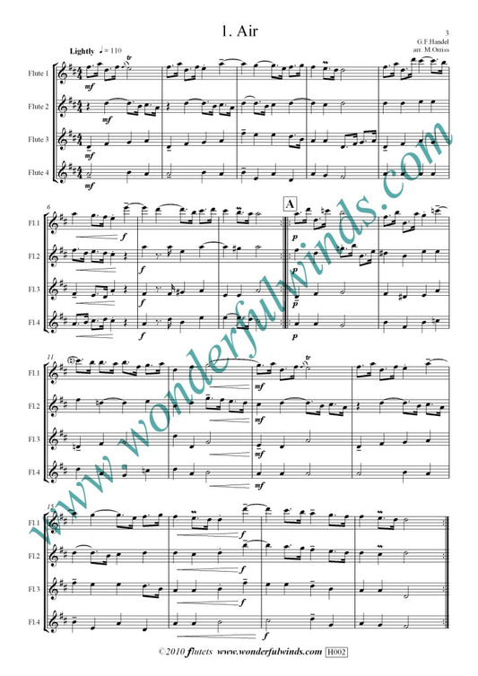 Handel: 3 Dances from The Water Music Suite for flute quartet - Digital Download