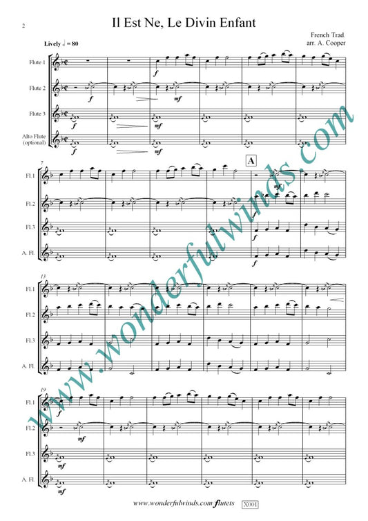 Trad: Il Est Ne, Le Divin Enfant flute trio/quartet - digital download