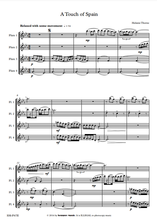 Thorne, Melanie - A Touch of Spain - flute quartet - Digital Download
