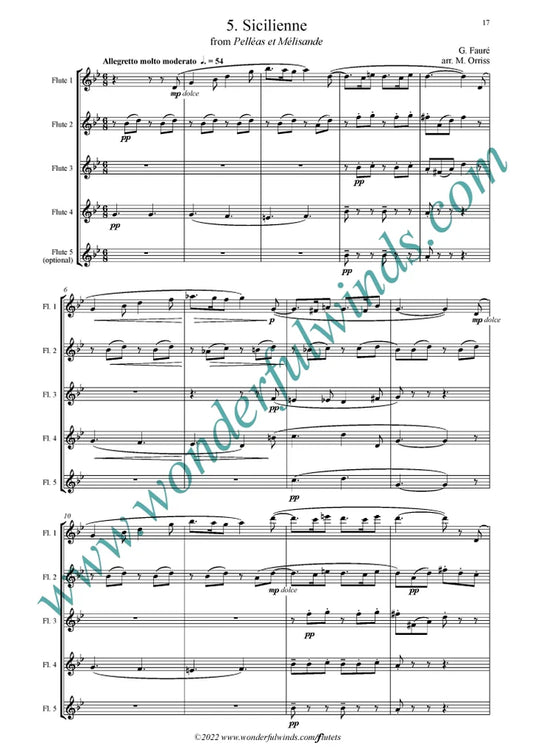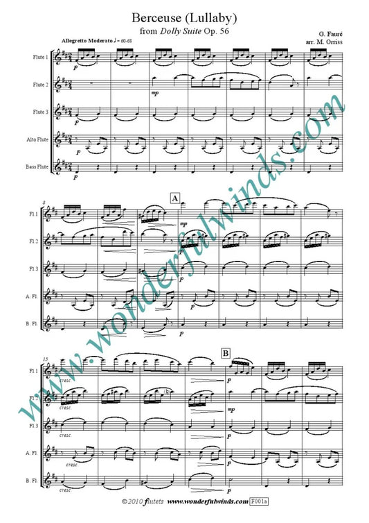 Faure - Berceuse from the dolly suite - for 5 flutes Digital Download