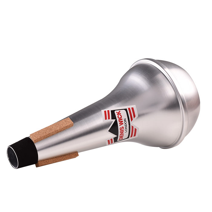 All of our aluminum mutes are hand-made using hand-spun aluminum. Unlike machine-spun aluminum, the hand spinning process creates a higher density aluminum that is extra responsive and provides the Denis Wick straight mutes with their signature sound. The purposefully designed shape creates perfect intonation and helps increase projection. All of this is held in the instrument by using the finest all natural cork that is soft to the touch but durable enough to last for years.