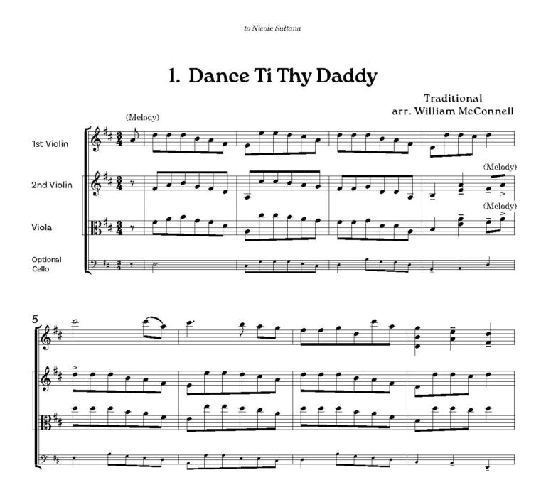 A Flexible Compendium of 25 Folk Tunes from the North of England, arranged for Two Violins (OR Violin & Viola) with optional Cello (Downloadable) by William McConnell