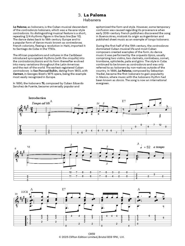 The Essential Latin Collection for Guitar contains Latin songs and dances which, in the main, have become international “standards”. During the 20th century, much music from the Latin Americas was re-discovered and often re-produced with newly created titles and lyrics. The arrangements here are all based on the original traditional ideas and have become, thereby, new music for the guitar. The universal popularity of the pieces allows them to be played in almost any setting. They can serve for both study and solo performance, and the different styles and moods of the music make the collection a valuable and enjoyable addition to the guitar repertoire.